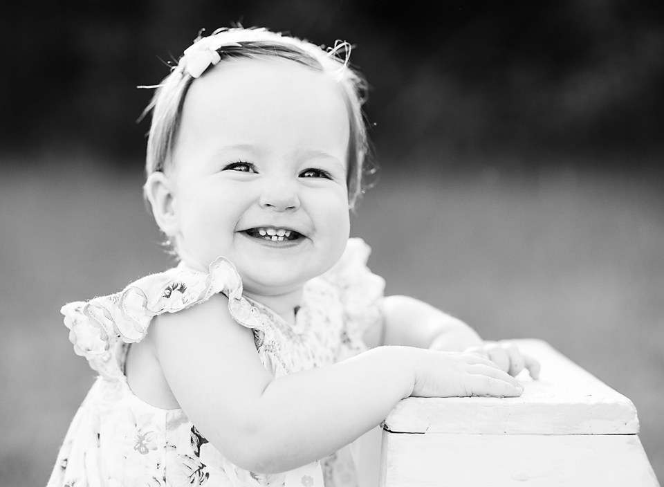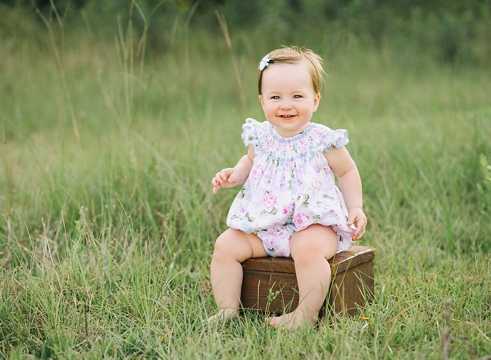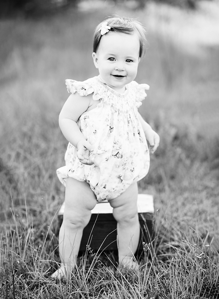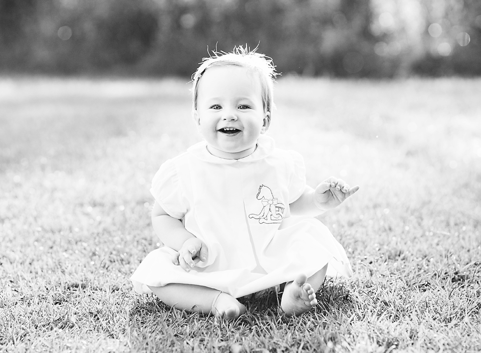 Little Sadie Grace wasn’t phased one bit by the 90+ temperature, but by the end of her session I looked like a drenched rat. She stayed in a good mood the entire time and smiled in just about every single picture I snapped. Oh how I love one year old photo sessions in the field!