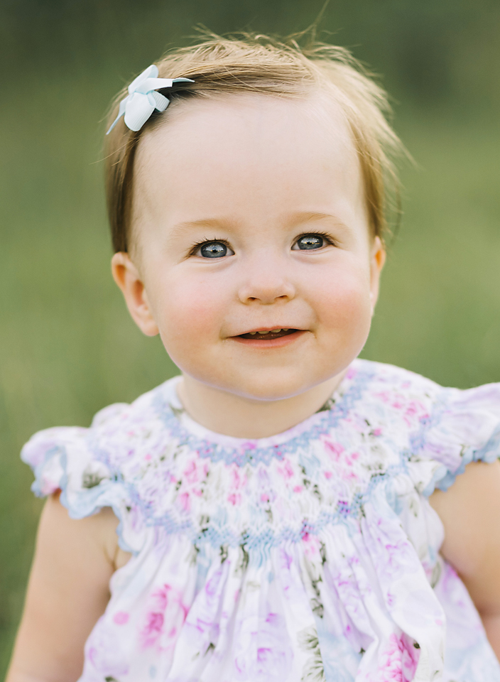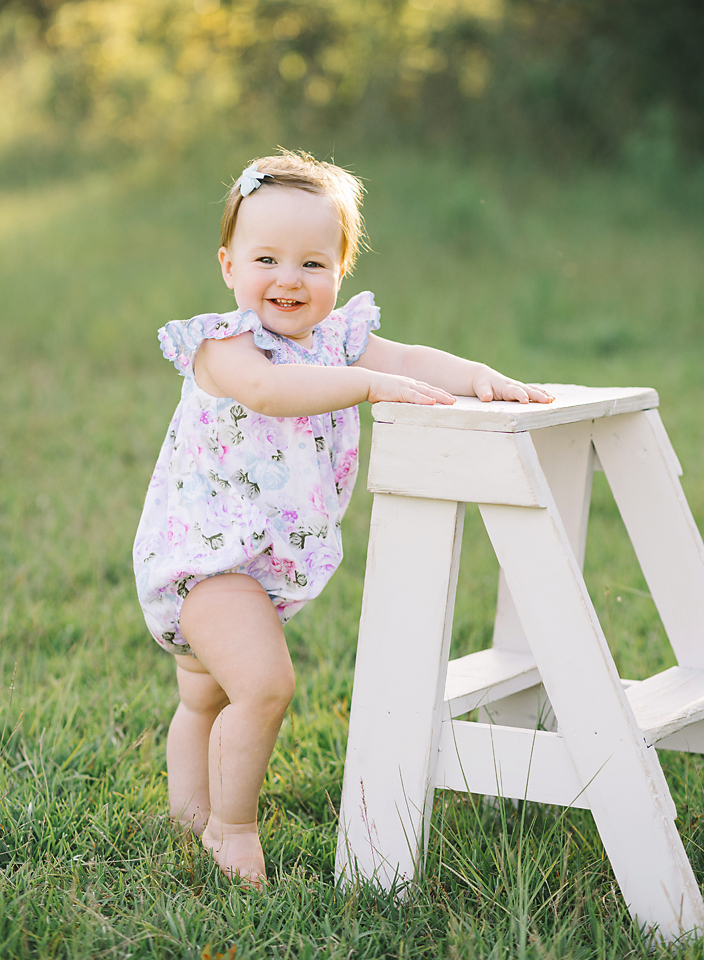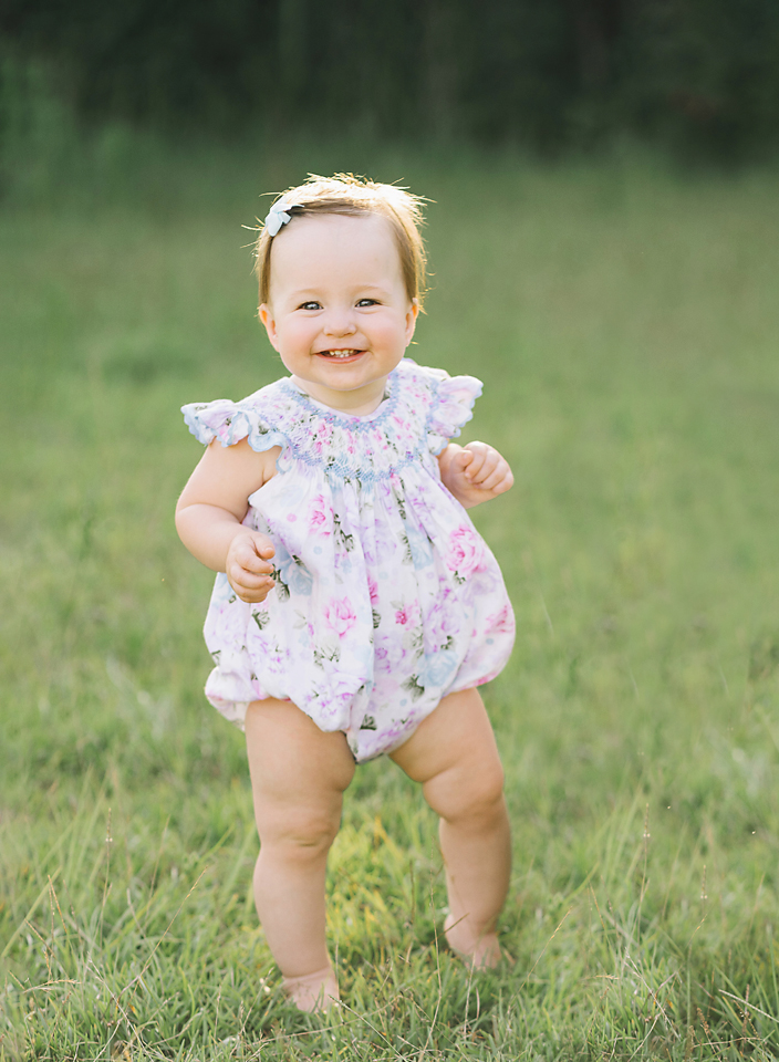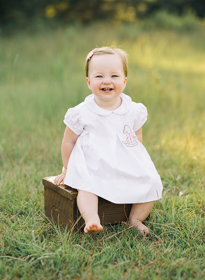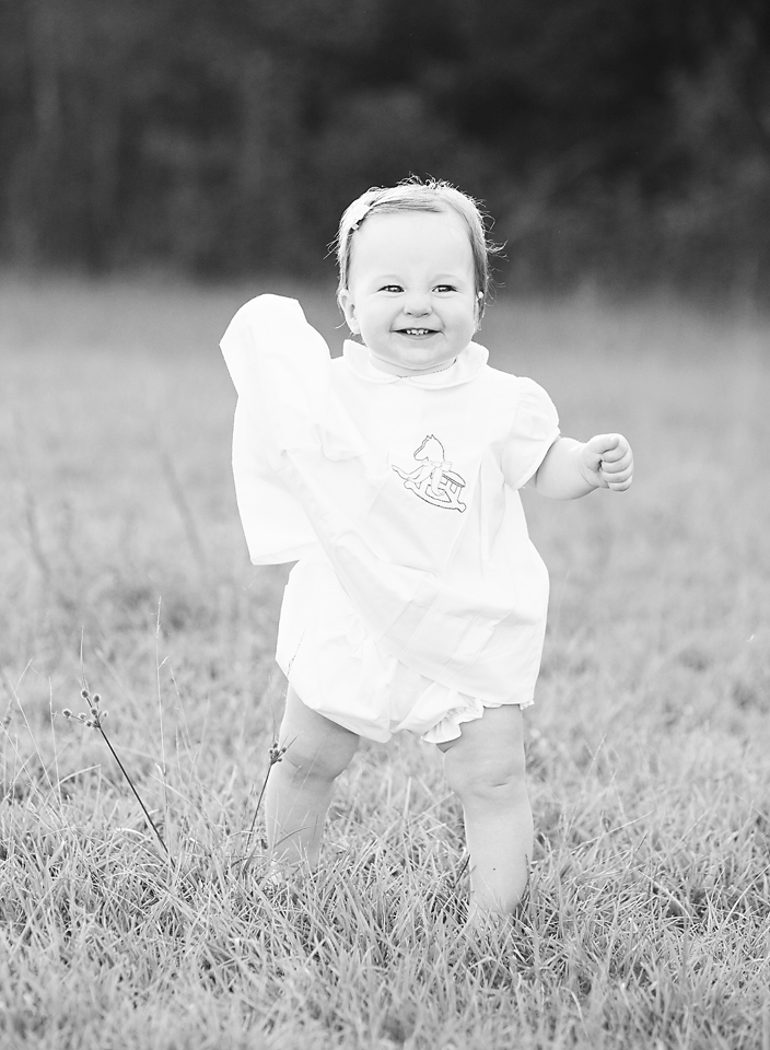 Little Sadie Grace wasn’t phased one bit by the 90+ temperature, but by the end of her session I looked like a drenched rat. She stayed in a good mood the entire time and smiled in just about every single picture I snapped. Oh how I love one year old photo sessions in the field!