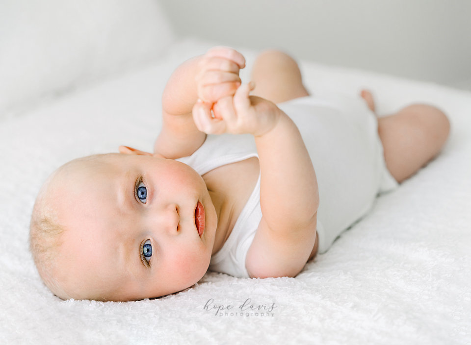 It’s no secret that I love keeping life simple, which includes my photography style. So when Dallas’s mom asked my suggestion on what her little boy should wear for his 6 month old photo session – my answer was a simple white onesie.
