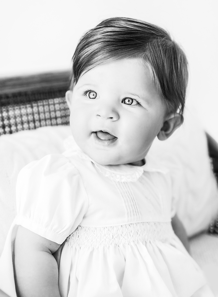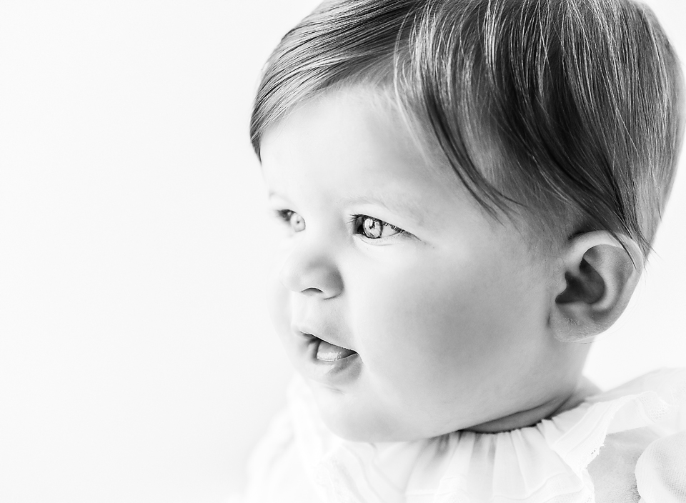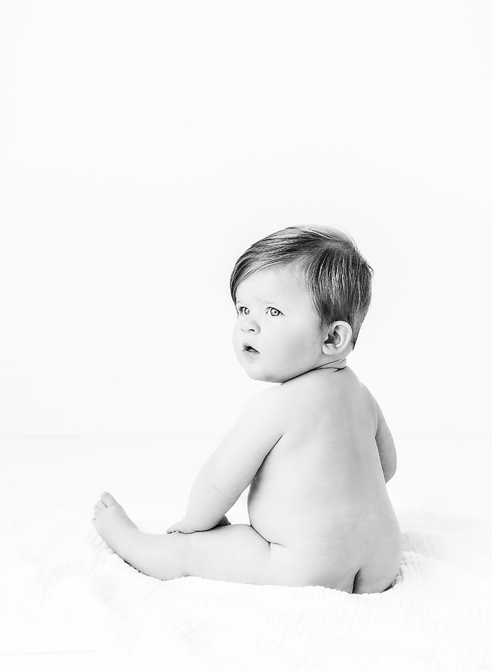 Seven month baby photos are some of my very favorite images to capture. Those cheeky little grins and chubby baby rolls that often come with this age are just too cute! Plus most babies have become good sitters by this point. All of which makes for the perfect baby photo session.